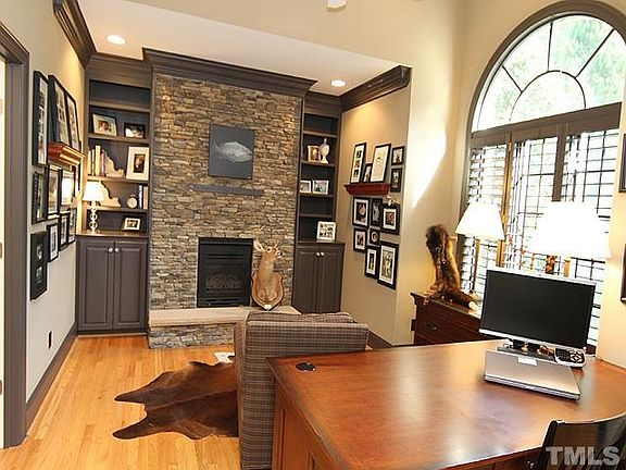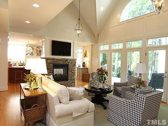 BEAUTIFULLY renovated! Detailed wainscoting throughout, redesigned gourmet kitchen with custom Signature Cabinetry, custom paneled and stainless appliances, granite countertops, oversized island and built-in hutch, luxurious main floor owner's suite with his/her walk-in closets and redesigned bath with convenient laundry area attached. Outdoor living with stacked stone fireplace, stainless grill and breathtaking views of golf course, pond and rolling hills. Close to UNC, Duke, shopping.