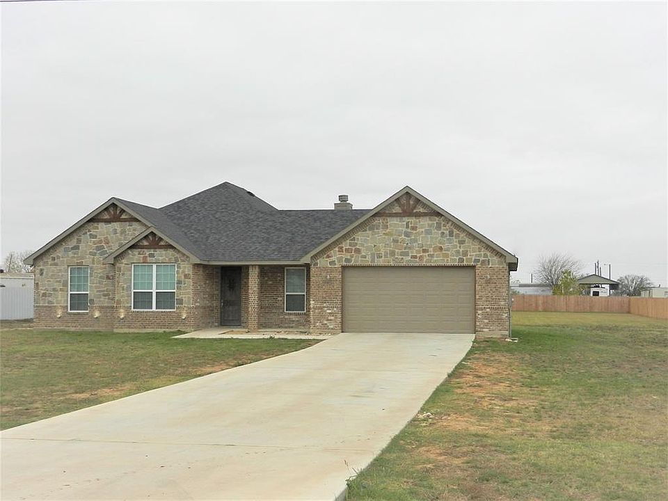 Move-in Ready! Charming new brick and stone accented home sitting on one acre. Home features beautiful ceramic tiled floors and open concept living area. Wood burning Stone fireplace adds to the ambiance of the home. Kitchen has custom cabinets, granite counter tops and Samsung SS appliances including refrigerator. Covered back patio w decorative lighting.