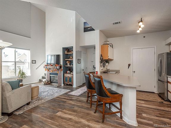 Stunning top floor condo in the highly desirable Castle Villas subdivision of Castle Rock! As you enter, take note of the open and bright feel this unit provides! Soaring ceilings and a gas fireplace highlight the living area which features an abundance of windows and newer, luxury vinyl plank flooring! The generous sized loft area gets plenty of sunshine and overlooks the living area while still providing privacy! Use as a third bedroom? The kitchen, dining area, and living room flow seamlessly which makes for a great area to gather! Head down the hallway to a bedroom and the spacious primary bedroom with a walk in closet! A full primary bedroom bath and a half bath, along with a laundry room/pantry complete this incredible home! Wait! I almost forget to mention the amazing, large covered deck that is perfect for enjoying your morning coffee or relaxing after a hard day! Talk about location! This condo is within minutes of amazing restaurants, shopping to include Whole Foods, King Soopers and The Castle Rock Outlet Mall! Easy and quick access to the highway makes getting to Denver or Colorado Springs a breeze! There is a deeded, one car detached garage within steps of the home! Call Brad Brallier today to set up your private showing!