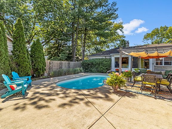 Welcome to Garver Rd. This charming Bedford stone ranch in Meridian Kessler Terrace. Enjoy this backyard Oasis w/Pergola & beautiful in-ground pool. 4 season Sunroom w/wet bar overlooking pool w/oversized windows & screens. Perfect space for backyard entertaining! Spacious updated Kitchen w/SS Jennair 6 burner oven vented to outside & Jennair dishwasher. Kitchen has granite countertops & updated cabinets. Eat in Breakfast/Dining room with Breakfast Bar. This 3BR, 2BA home features ceiling fans in all BR's. Primary bedroom w/ensuite. Primary has dual custom built-in wardrobes. Large hallway pantry/closet, cedar closet, custom tile in BA, Entryway & Kitchen. Vinyl windows w/original marble window sills. Living room recently painted, window blinds throughout the home. Spacious 2 car garage w/individual openers for each door.