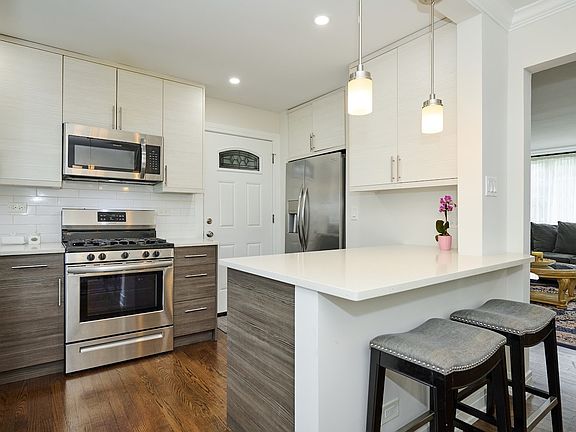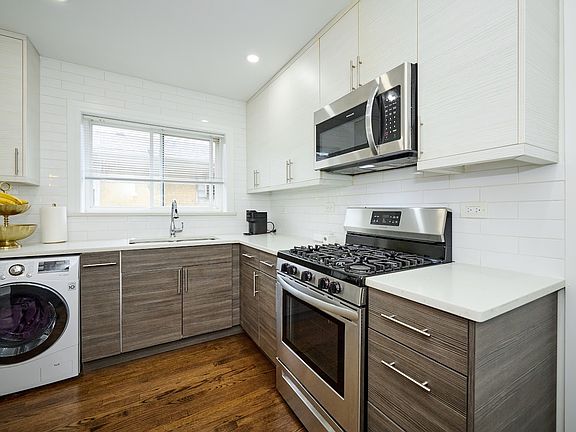 Spacious and beautifully remodeled 2-bedroom, 1-bathroom condo located in the heart of West Ridge. This bright and airy unit was completely renovated in 2022 and features hardwood floors throughout, a modern kitchen with white quartz countertops, 42-inch cabinets, subway tile backsplash, newer stainless steel appliances, and a large peninsula offering additional counter space and seating. The unit includes a designated dining room area, perfect for entertaining or everyday living. The bathroom was fully updated in 2022 with contemporary finishes. Both bedrooms offer generous closet space with customized California closets. Windows were replaced in 2020, adding to the unit's comfort and efficiency. Additional features include a separate storage unit, clean and well-maintained laundry room, and a bike rack for resident use. Well-managed, community-oriented association with a strong sense of pride and care. Located just steps from the new West Ridge Metra station, Devon Avenue bus, restaurants, parks, Target, Starbucks, and more. Easy access to downtown with public transportation right outside your door. Outdoor parking available via waitlist. A must-see unit offering space, style, and convenience in one of the city's most vibrant neighborhoods. Important: taxes do not reflect any exemptions.