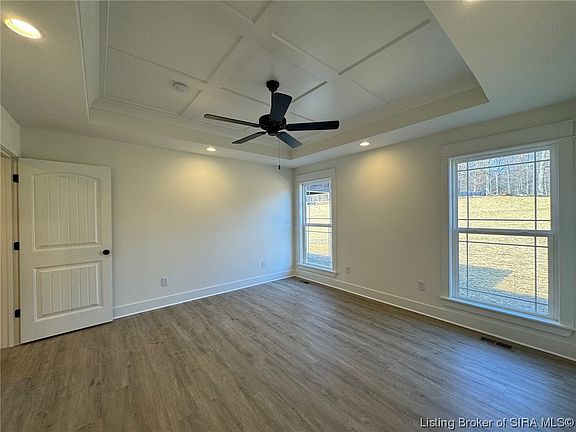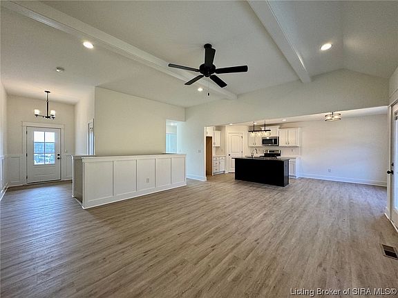 Welcome to "The Amy" Plan with a 3 CAR GARAGE in ASB's newest FLOYD COUNTY development of Poplar Woods! QUALITY built by ASB, this plan offers a wide open floor plan with a true FOYER area flowing into the vaulted great room with 10 ft ceiling height and right into the kitchen area that provides an island, big pantry, dining area, granite or quartz countertop, and tons of cabinet space. LVP "life proof" flooring will be located in the foyer, great room, kitchen, hallways, hall bath, OWNERS bedroom and bath! All bedrooms are a great size, including the owners suite that offers a private bath with dual sink w/ granite countertops, CUSTOM TILE shower and big walk in closet! The lower level is a FINISHED basement that has a HUGE family room, 4th bedroom, full bath, and a ton of storage space. Poplar Woods is only minutes from the expressway and downtown Louisville, and also provides great lots with incredible country views. RWC WARRANTY provided at closing. This home is ENERGY SMART RATED!