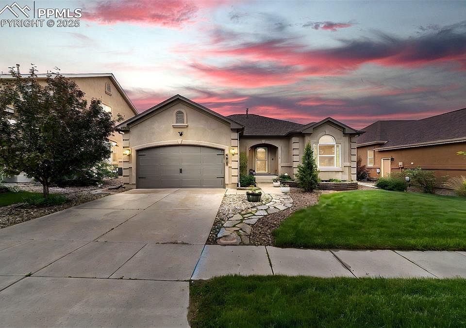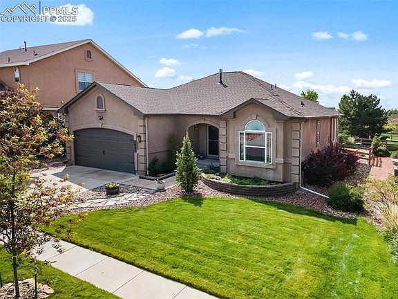 Welcome to Revelstoke, a beautifully upgraded stucco home located in the highly sought-after Wolf Ranch community & D-20 schools. This exceptional property offers the perfect blend of modern elegance & natural beauty, backing directly to open space for added privacy & scenic views. Step inside to discover a thoughtfully designed interior featuring high-end finishes throughout, all natural hardwood on entire main, upgraded carpet in basement, luxury vinyl tile in upstairs wet rooms, & newly painted interior. From the remodeled & upgraded gourmet kitchen w/new cabinetry, granite kitchen countertops, large breakfast bar, & new GE Café series appliances - to the fully remodeled 5pc primary bathroom w/frameless shower, quartz countertops & large walk-in custom closet w/built-ins. Every detail has been carefully curated for comfort, elegance, & style! The open-concept layout pulls you in to this warm, inviting atmosphere perfect for entertaining or just relaxing w/multiple large windows in the dining & living room showcasing the established backyard. Every bedroom w/in the home have large walk-in closets, w/the downstairs bedrooms each being large overall in size. Custom lighting & elegant black matte hardware have been upgraded throughout. Walk-out from the living room w/your morning coffee or evening sunsets to the spacious & private backyard on the custom stamped concrete patio that runs the length of the home, w/raised garden beds, & don't forget the natural gas grill & Cal Spa Niagara hot tub that are staying w/the home! Walking/biking trails are in your backyard as well, literally! This home is situated minutes from shopping, restaurants, main corridors, entertainment, commute to military bases, & more. Wolf Ranch w/the new lake, a private Rec Center w/pool & splash pad, community events & concerts, all make this your next place to call home...come take a peek! Main level living at its finest, request your private showing!