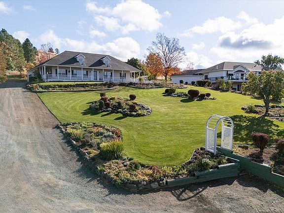 Charming Farmhouse style 1.5 story on 1+ acre! Main Floor living at it's finest. Cozy charm and timeless style, this offers the perfect blend of rustic elegance and modern comfort! Wonderful wrap around front porch allows you to enjoy the fabulous westerly views! Hardwood floors, Pella windows throughout, central vac, newer gas hot water heater, A/C, and furnace. Bonus room, 3/4 bath and bedroom up! Gardener' paradise with small fruit orchard, perennial gardens, and raised beds!