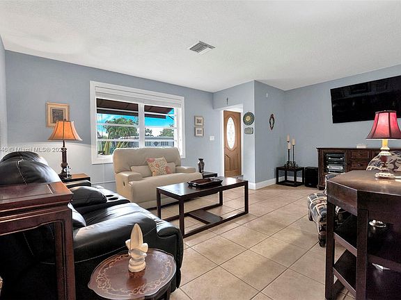 Nestled 1 block south of West Miami city limit & 3 blocks west of Coral Gables, the home renovations include newer white kitchen cabinets with granite counters, new 2020 wine fridge, propane range, lighting, electrical, plumbing, water heater, washer and new 2022 window treatments. Two rooms were combined to create 18’x20’ primary en-suite with new 2018 luxury bathroom, glass shower + shower panel tower system, dressing area with double sinks and walk-in closet. Split floor plan: second 20’x10’ ensuite with bath and walk-in closet. New 2022 flat roof + new 2016 pitched roof. Enjoy entertaining in 23’x10’ roofed patio + pergola with lighting and fridge on finished slab in private fenced and landscaped backyard.