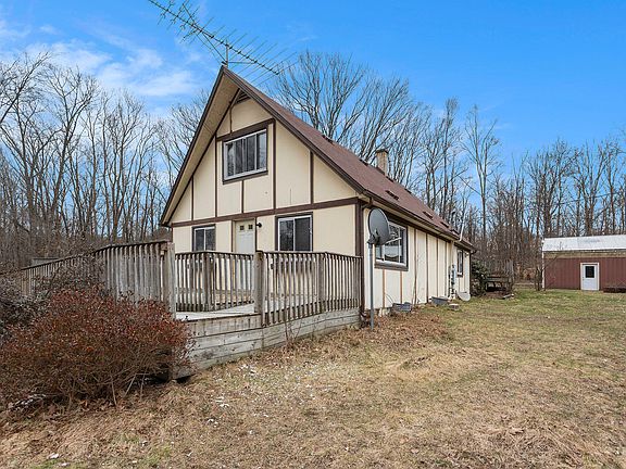 This house has it all, including an attached mother-in-law apartment! Let's start there, the apartment has 1 bedroom, 1 full bath with tub, full kitchen and living room. The apartment can be reached from the main house with a couple steps on the deck to the back door of the main house. Main house has a very large kitchen and living room. There is also a full bath and nice size bedroom on the main floor of the main house. Upstairs there are 2 more bedrooms, a generous size landing that could have multiple uses, and another full bath. One of the bedrooms upstairs has a balcony with a staircase going down to the yard. Most of the flooring has been replaced throughout the main house and has all new drywall and fresh paint throughout. The home is in move-in ready condition. Home sits On 9 acres but has an additional 80 acres that is connected to the 9 acres that is owned by 20 other homeowners. This 80 acres partial ownership goes with the house. This land can be used freely by all owners. If you are a hunter, this could be your new favorite place to hunt, right out your back door. There is a barn with an oil pit, places to have farm animals. This house has everything!