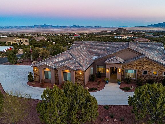 Picture yourself living in this luxurious, custom built, smart home that includes a magnificent 40x60 finished drive thru RV garage with a full bath in the highly desirable Lake Juniper Estates. This home was truly built for both entertaining and everyday living, with plenty of space and stunning views. You will enjoy the open floor plan with high ceilings, formal living area, family room and a game area. Relax in the formal living area and enjoy the marble stone floor to ceiling fireplace. The family room and game area can be enjoyed together and boasts several large picture windows with power window coverings overlooking the stunning views of the surrounding mountain area and the night lights of the town. The heart of this home, the kitchen, is fully equipped with GE Profile stainless steel appliances, an abundance of solid wood white cabinets with dove tail finish, soft close hinges and pull out drawers in the cabinets. The marbled granite countertops are absolutely beautiful and include an oversized four person breakfast bar area. After a long day, you can retreat to your master suite, turn on your custom marble stone dual sided fireplace and relax in your sitting area or enjoy and long bath in your jetted spa tub in your master bathroom. The master bathroom is spacious and includes a dual vanity, large walk in shower, jetted spa tub and a dream walk in closet. The interior of this home is second to none and the exterior is even better. The views from the patio will leave you breathless and feeling at peace. The outdoor covered patio includes full outdoor kitchen hook ups and can become a enclosed covered patio in a minute with the push of a button to close the power shades. The 40x60 detached drive though RV garage includes 14 foot doors, finished and insulated, plenty of room for your RV and much more. The garage has a full bath, hot water heater, full RV hook ups including 220 volt, 30 amp plug, soft water and sewer drop. The land around the home has been fully landscaped with custom stone work, concrete drives, proper drainage and an automatic watering system. This home was built with energy efficiency in mind with upgraded insulation, low e windows and a pellet stove in the open living area. Entering the front door you will immediately feel like you are home and in your own private mountain retreat with only a 5 minute drive from town. Welcome Home!