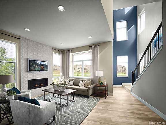 This is the Ignite Elevated Model Home offered by Epic Homes in Painted Prairie! This modern three-story has 3 beds and 2 full and 2 half baths and features a spacious third floor with a wet bar (featuring a kegerator and beverage fridge) and a rooftop deck that is partially covered so you can enjoy all that colorful Colorado has to offer! Luxury Vinyl Plank is featured on the first and third floors with upgraded carpet on the 2nd level, in addition to upgraded cabinets, countertops, fixtures, and lighting throughout. Plenty of windows bring in an abundance of natural light, illuminating your entire home, with 10-foot ceilings on the first floor and 9-foot ceilings on the second and third floors. Step into the spacious kitchen with Party Island and an upgraded Jenn Air Stainless Steel kitchen appliance package (Includes GAS range, hood vent, microwave drawer, dishwasher, oven, and French door refrigerator). Cozy up by the fireplace in your living room or enjoy a beautiful afternoon on your covered front porch facing a garden court. Ideal loft on the second floor, perfect for utilizing as a playroom, game room, or home office! Unwind at the end of the day in this Master Suite, featuring its own private balcony. Laundry is a breeze with a door from your walk-in closet to the laundry room, complete with a Whirlpool Front Loading Washer and Dryer. There is also plenty of room for storage in your unfinished basement. This home comes fully equipped with a TANKLESS water heater, Dual Heating, and Air Conditioning, smart garage door openers, a Skybell doorbell, and an Amazon Echo Dot or Google Mini. *Taxes have been estimated based on current pricing and historical data. Ask one of our preferred lenders for a more specific estimate.