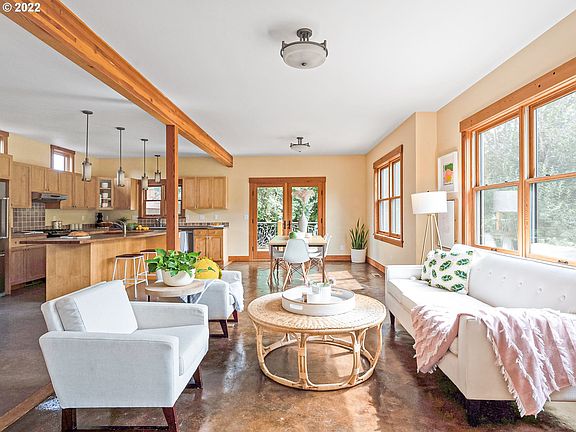 High-performing, green oasis! Unique, 3 bed/3.1 bath w/ bsmnt living area. Spacious, light-filled open floor plan flows to backyard. Upstairs find laundry, beds, baths + open lofts w/ skylights. Smart HVAC throughout, solar, earthen + wheat board floors, recycled building materials - the genius of this house is bountiful! Shed + treehouse add even more delight in a tree-filled backyard! Possibility abounds in adjacent lot - MLS#22613959. [Home Energy Score = 10. HES Report at https://rpt.greenbuildingregistry.com/hes/OR10147744]