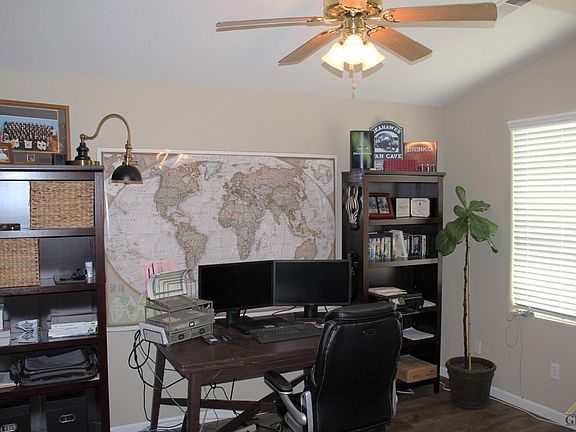 Upgraded Home in the Northwest You will love this elegant home with 4 bedrooms, 2 baths, an office, RV parking and a 2-car garage home. This home features a split wing, vaulted ceilings, newer flooring, a spacious great room, dining area, a nice open kitchen with stainless steel appliances, a breakfast bar, and custom cabinets. The master suite offers two walk-in closets, a full bath with double sinks, separate tub plus shower, and access to the backyard. There is an indoor laundry room with a closet perfect for storage. The huge backyard has a covered pergola, nice lush greenery with palm trees, a great yard, and a sparkling pool with water features, removable security gate, plus a spa perfect for those hot summer days.
