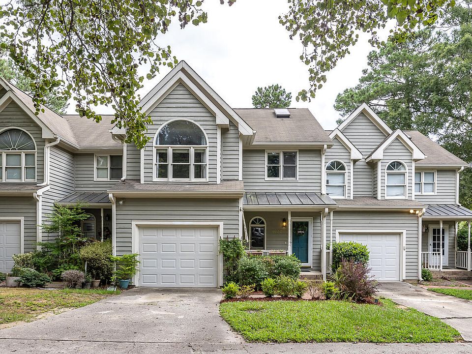 Amazing Lakefront 2 Bedroom, 2 Full Bath Townhome with gorgeous water views of Lake Iris and attached garage! Short distance to Buffaloe Road athletic park and aquatic center, and the Neuse River trail plus easy access to 540 and Downtown. So many features including renovated bathrooms with quartz countertops, updated kitchen with marble countertops, walk-in closets, new interior paint throughout, double deck balconies replaced 2017, gas fireplace, skylights, jacuzzi tub, and spacious Primary Bedroom. Excellent location and move-in ready. No city taxes!