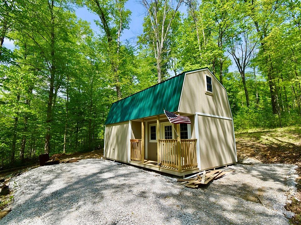 New construction cabin for sale in Indiana. Property is near the town of English, in southern Indiana. Cabin property borders over 400 acres of Hoosier National forest. There are over 2000 additional acres within a mile or two, so there will be plenty of hunting space for all your friends. Two story cabin is newly built. Upstairs is set up as a bunk room and the first floor has Kitchen and Living area. Also a bathroom with shower, sink, and commode. There are two heat and air units one for each level. The walls are rough cut poplar with barn metal on the ceilings. The green shaded areas on the property maps are Hoosier National Forest. And yes, the deer will be walking past your front porch. One hour to Evansville, and 45 min to Louisville