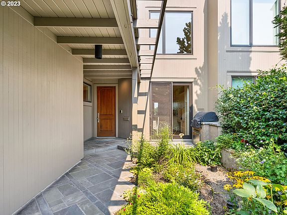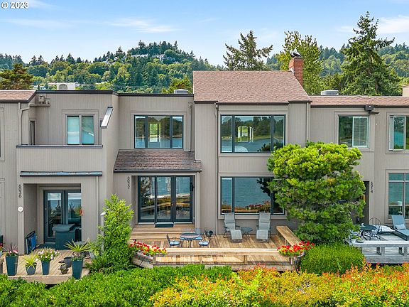 Open House canceled for 8/19. Welcome to your dream home nestled along the tranquil waters of the Willamette River. Embrace a luxurious lifestyle in this stunning 3-bedroom, 4-bathroom residence spanning over 2,700 square feet + a 529 sq. ft. Garage, offering an idyllic blend of modern elegance and breathtaking natural beauty. Primary suite boasts his and hers baths and large walk in closet. Fee Simple land. Soaring ceilings and expansive windows bathe the interior in natural light, creating an inviting and airy ambiance. The gourmet kitchen boasts top-of-the-line appliances, elegant cabinetry, and an adjacent breakfast room with garden views making it a chef's paradise. Say hello to river & mountain views each morning on the east deck, and the sunset each evening on the west deck. The living room features a cozy fireplace, perfect for creating cherished memories with loved ones. An elegant dining area opens up to the outdoors, offering the ideal setting for entertaining or enjoying intimate meals with a river view. The beautifully landscaped entry garden with a fountain greets you as you walk under the covered breezeway from the garage to the front door. Situated in a prestigious neighborhood, this property enjoys one of the most coveted locations in Portland. The unobstructed river views present an ever-changing tableau, with tranquil waters reflecting stunning sunsets and wildlife passing by. Immerse yourself in the beauty of nature as you take leisurely strolls along the riverbank or enjoy peaceful moments from your own private deck. The surrounding neighborhood provides diverse dining options, boutique shops, and local amenities are just moments away, providing convenience and entertainment within walking distance. Contact us today to schedule a private tour and witness this quiet and peaceful riverfront retreat for yourself!
