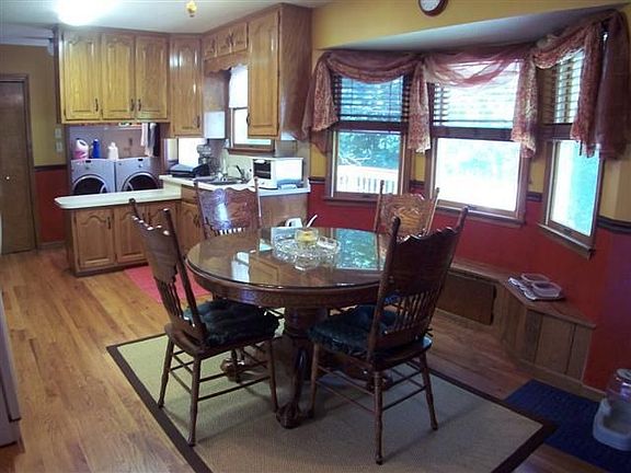 Secluded hide-a-way resting on 2.48 ACRES. Private lane wonders through the trees to reveal this cozy Ranch plus 30 x 40 detached garage with 2 bay parking; great for boat or motor home; Electric and concrete floor. Beautiful hardwood floors throughout Living Room and Kitchen. Raised panel cabinets, pantry and main level Laundry hook-ups. Double vanity Bath in Guest Bath and also Master Bathroom. Newly finished Family Room, Bedroom, Bath and applianced Kitchen down; Great In-Law Quarters. All appliances down will stay except for refrigerator. Outdoor wood furnace and FAE heat. Enjoy privacy yet close to Hwy 179. Trees, Wild Life and a Beautiful County Setting.