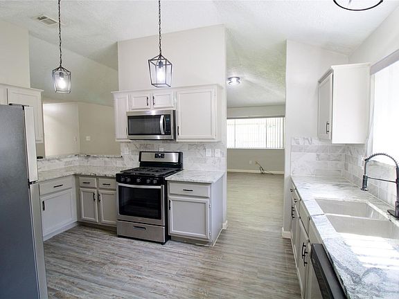 Courtesy of Real Broker, LLC Welcome to 6022 Thom Road in Humble, TX! This updated 3-bed, 2-bath home features an open layout, fresh paint, and recent renovations. Includes a covered patio, 2-car garage, washer, dryer, and refrigerator. Conveniently located near shops and schools.