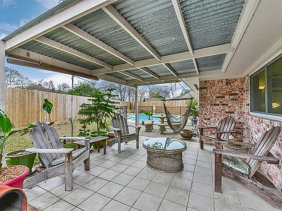 NEVER FLOODED! Welcome to this lovely 3 bedroom, 2 bathroom, 2 car garage home with a private salt water pool! The home features spacious front and back yards with tidy landscaping, covered front porch, covered back patio, raised garden beds, hardwood floors, outstanding stone wood-burning fireplace, breakfast room, kitchen with gas stove, & spacious master bedroom. This home has had several recent updates, including A/C replacement (2017), backyard fence replacement (2017), kitchen backsplash (2017), guest bathroom vanity + toilet + medicine cabinet (2017), master bathroom vanity + medicine cabinet (2013), electric box replacement (2014), saltwater pool conversion (2011), and pool pump motor replacement (2017). Make this your new home today!