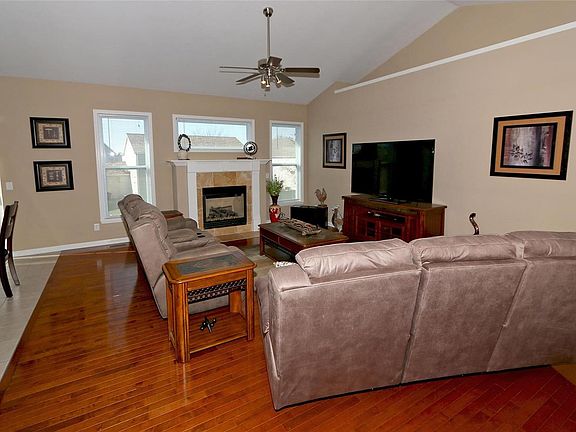 Beautiful custom built ranch home with over 3000 sq ft of high quality finish!  Energy conscious?  The large great room boasts a direct vent gas fireplace!  E3 Glass windows throughout.  The kitchen has 42" raised panel cabinets with granite countertops and undercounter deep stainless steel sink and tiled backsplash.  Solid 3/4" maple hardwood flooring.  Lower Level is finished with a 4th bedroom, full bath, rec room, study and theater room, prewired for surround sound.  With gas furnace and appliances, the home also offers 200amp electrical service with main and sub panels.  Subdivision amenities include a clubhouse, 2 pools, sports fields, lakes and walking paths.
