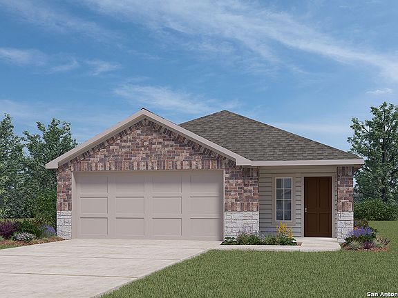 Introducing The Caroline plan, a stunning one-story home featured in Riverstone at Westpointe in San Antonio, TX. The Caroline is sure to impress with its classic front exteriors, 3 bedrooms, 2 baths, and 2-car garage. An elongated foyer welcomes you into an open concept kitchen, dining area, and living room, perfect for entertaining. This home's kitchen includes shaker style cabinetry, quartz counter tops, stainless steel appliances and a spacious kitchen island with a deep farmhouse style single basin sink. The main bedroom is located right off the living room and features a semi-vaulted ceiling and an attractive ensuite bathroom. You'll enjoy getting ready every day with plenty of bathroom space and modern bathroom features including quartz countertops, shaker style cabinets, a tiled walk-in shower and spacious walk-in closet. If privacy is your top priority, this ensuite bathroom comes standard with a separate water closet. Every bedroom has quality carpet, a closet, and windows for plenty of natural lighting. Whether these rooms become bedrooms or other bonus spaces, there is sure to be comfort and functionality. Additional features include a back patio that overlooks a fully landscaped and irrigated yard, sheet vinyl flooring in entry, living room, and all wet areas, and quartz countertops and tiled flooring in all secondary bathrooms. This home also comes equipped with our HOME IS CONNECTED base package. Using one central hub that talks to all the devices in your home, you can control the lights, thermostat and locks, all from your cellular device.