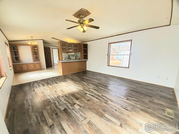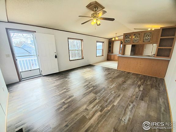 PRICE REDUCED! Here is your opportunity to have a great 3 bedroom, 2 bath home in what could be the best all-ages and dog friendly community in Loveland! First you find an abundance of parking our front, then you enter the home on the brand new steps. Upon entering you get to enjoy the nice open floorplan with the living room flowing right into the kitchen and dining room. Expansive kitchen with an abundance of woodgrain and leaded glass cabinets. The additional cabinets in the dining area could make for a great coffee bar. Stainless steel double sink and all appliances are included. Separate laundry room with storage and washer/ dryer are both included! Pantry cabinet just to the right of the washer/ dryer. Renovated primary bedroom with ample space for furniture and on suite bath complete with tub shower combo and huge soaker tub. Split bedroom floorplan places the other 2 bedrooms and main bath at the opposite end of the home. Home has a new luxury vinyl flooring in living room and all 3 bedrooms. Yard with established tree and bushes plus a shed for all the extras. Community even allows chain link fencing to be added, if desired. Financing is available if needed. Come make this affordable home in a great community yours today!!