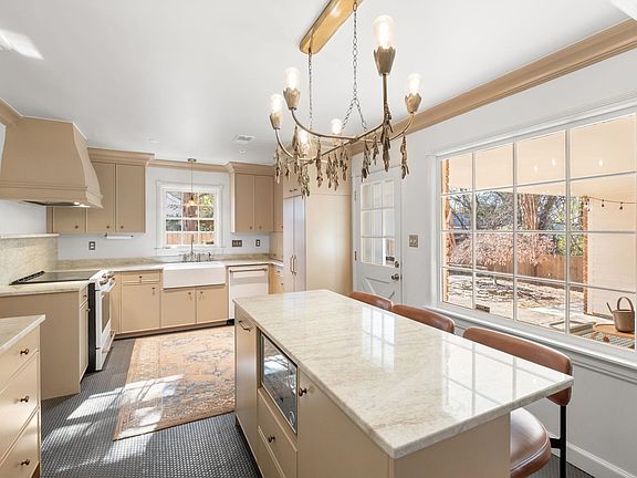 If you love color, character, & high-end finishes- this gorgeous, move-in ready 3/2 is a MUST SEE! Fully renovated kitchen boasts a fluted apron sink + bridge faucet, ruffled pendant above, matte white & bronze cafe appliance package, custom millwork & cabinets (complete w lift-away appliance cabinet & hidden storage), luxurious Taj mahal quartzite countertop/backsplash, dazzling chandeliers, oversized island w bar seating flows effortlessly into color-saturated LR w/ a cozy fireplace. Fully renovated hall bath w/ deep inset tub. Flooded w/ natural light by day & beaming w/ ambience in the evening, this home offers a luxurious lifestyle well beyond its price point. Also has nest thermostat, tankless water heater & conveniently located near interstate! Exterior features new copper gutters, motorized entry gate, ring doorbell, fenced yard, carport w/ large parking pad in front & back, freshly poured patio plus extra yard & storage behind new privacy fence. See Youtube tours online!