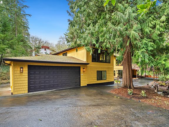 As seen in Portland Monthly's Property Watch! (4/2)This gorgeous, architecturally unique midcentury home, constructed of Canadian cedar, is nestled in a serene, sprawling, forested setting on a private lot and offers a tranquil retreat from the hustle and bustle of city life. Spacious living areas with vaulted ceilings showcase precise craftsmanship and beauty of the cedar's rich materiality. Floor to ceiling windows bring in the lush greenery of the surrounding area. The expansive, open-concept interior design fosters a feeling of connectivity between the living space and a modern kitchen with high-end, smart appliances- perfect for entertaining guests or enjoying family meals! Retreat to the peaceful, sanctuary-like bedrooms where windows frame wooded views. Step outside onto the expansive deck, where you can breathe in the fresh forest air, watch birds, listen to soothing sounds of nature. The flexibility of the downstairs, daylight area features a large and cozy bedroom that opens to a living space (with a Murphy bed), more private and forested views, and a separate entrance. The current art studio space could be used as a kitchen (220v power) ready to accommodate a long term guest, family member, or for a potential ADU. Additional creative space at the top of the driveway where a permitted and heated workshop awaits your projects! With its secluded location and timeless design, this mid-century cedar home is a rare find and the perfect oasis for those seeking privacy and tranquility in a natural setting. Pella, double pane windows and doors throughout. Roof 2017. Exterior paint 2023. Kitchen 2022. New furnace and tankless water heater, and smart appliances (thermostat, dishwasher, refrigerator, oven, microwave, grill) 2022. 2 car garage, Tesla EV charger. Bus stop 800ft away, 1/2 mile to Pendleton Pk/Gabriel Pk/Dog Pk/SW Community Center approx 1.5 mi. Safeway, New Seasons, Raleigh Hills, Hillsdale, Multnomah Village. Perfecto! [Home Energy Score = 6. HES Report at https://rpt.greenbuildingregistry.com/hes/OR10183889]