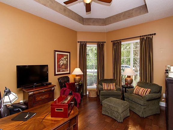 Welcome Home...come and enjoy this lovely home convenient to all you need! Gourmet kitchen with solid surface counters, 42' cabinets, SS appliances, water softener, Security System, Hardwood Floors, Wonderful Master Suite with Sitting Area overlooking Screened In-Ground Heated Saltwater Pool and Spa, 1 year old Trane A/C system, Newly Painted Outside the Home. Too many extras to mention....