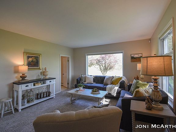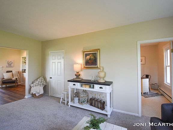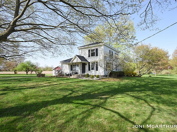 Calling all Chip & Joanna Gaines lovers! Beautiful 4 bedroom 2 full bath farmhouse sitting on over 34 acres just minutes from Belding on the South side. You are literally walking distance from town yet in the country & only 35 minutes from Grand Rapids. New flooring and carpet in most rooms, freshly painted and updated and roof is only 4 years old. Large windows that look out into the most gorgeous property for scenic views. Two living/family rooms with a kitchen in between for an open feel and great for family movie nights or game nights. Main floor primary with ensuite, main floor office area. Property has space for the kids to roam and play or if farming is your thing, there is plenty of room for that! There is so much to love about this property!