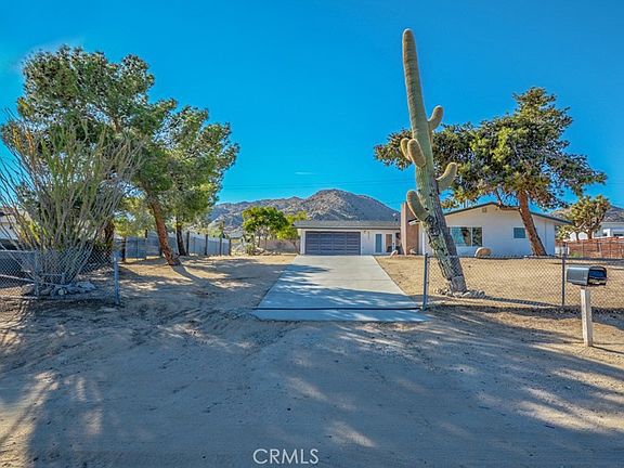 Come take a look at this home in the beautiful lower Friendly Hills area of Joshua Tree. This home is settled on a very spacious, fully fenced lot, positioned perfectly so you have a massive front yard and back yard. The home is surrounded by mature trees and cacti. The feeling of walking into a nice shaded yard, where you can hear the trees sway, and even see fall leaves in your yard is a feeling that cannot be taken for granted in the desert. Where many properties are bare in this desert, this property gives the feel of a private sanctuary. The home itself features a new roof, brand new appliances, brand new countertops, new glass shower enclosures, fresh paint, new mini-split HVAC system and more. The layout is spacious for a big family, or even for renting out a portion and living in the other half. As you walk up to the home, you see two entrance doors. One door leads into the main living room, and another door leads into a large entry way, with its own bathroom, access to the kitchen, garage, and backyard. This entryway could potentially be used as a third bedroom or suite to rent. The windows throughout the home are large and allow for a lot of natural lighting throughout the home. The living room features a beautiful view of the front yard and desert landscape as well as a fireplace. The home has a separate laundry room, which also leads to the backyard. When you step outside to the backyard, you will find a large enclosed patio, with large cutouts throughout to give you a killer view of the desert behind you. This home is ready to move into, and holds lots of potential. The neighborhood is quiet, and has incredible views of the surrounding mountains. You are just 6 miles from the National Park entrance, 3.5 miles from downtown Joshua Tree, and 3.3 miles to the nearest shopping center in Yucca Valley. You just found the perfectly located property for all of your needs, without sacrificing privacy and seclusion or a paved road. Schedule your showing today!