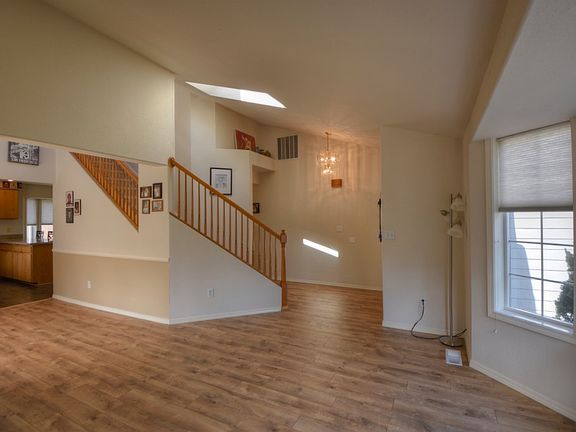Located in the Lakepointe neighborhood, this 3 bed 2.5 bath home is located on .22 acres with a fully fenced rear yard has new flooring, new granite kitchen counters, new back splash, new lighting, new garage door, fresh exterior paint & new fencing. The entry w/high vaulted ceilings opens to the living room & leads to the dining area or large family room with gas fireplace, open to kitchen area & slider to spacious back yard with room to run on relax in the hammock.