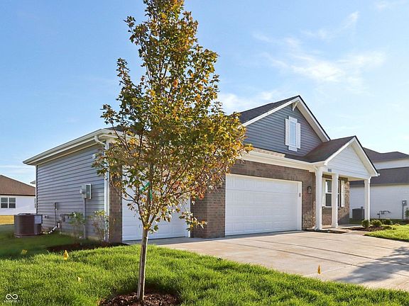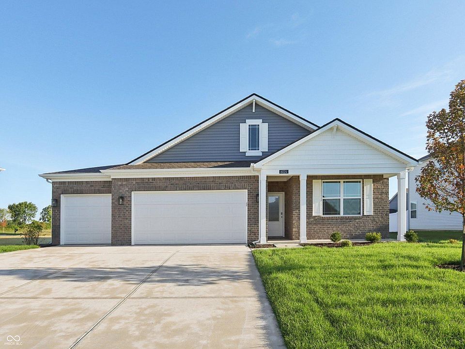 Step into a world of comfort and style with D.R. Horton, America's Builder, as they unveil the Chatham plan in the vibrant community of Trailside in Whitestown, IN. This stunning single-level home offers an inviting open living space, featuring four generously sized bedrooms and two exquisite baths. The main area boasts sleek solid surface flooring, promising both elegance and easy maintenance. At the heart of the home, the expansive kitchen dazzles with its large built-in island and pristine white cabinetry, perfect for hosting memorable gatherings. Retreat to the private sanctuary of the primary bedroom, complete with a luxurious bath and an impressive walk-in closet. Outside, a charming covered patio beckons for leisurely afternoons spent with loved ones. Residents enjoy a wealth of community amenities, including a clubhouse, 24-hour fitness center, and an array of sports courts for tennis, pickleball, bocce, and basketball. With walking trails and outdoor fitness circuits, there's something for everyone. Plus, with America's Smart Home technology, stay seamlessly connected to your world, ensuring convenience and peace of mind. Embrace the dream of refined living in this extraordinary setting.