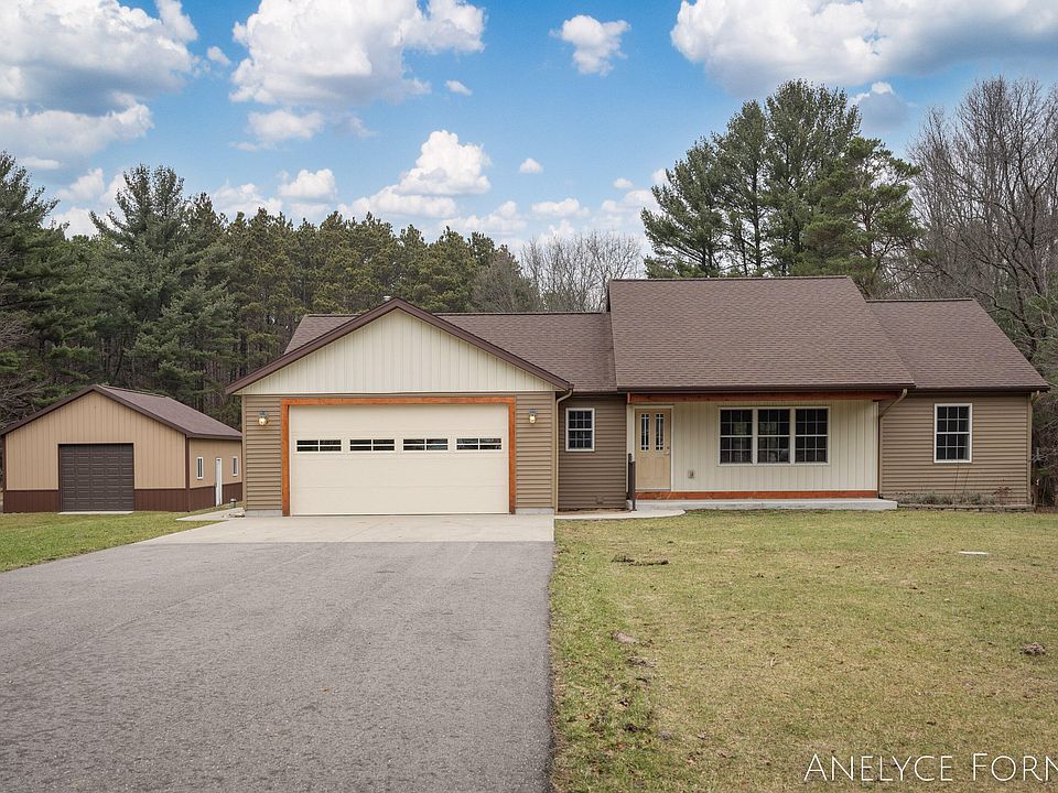 Welcome to 6024 Hancock St. Situated on just over 4 acres in Montague and only 4 miles from Lake Michigan this home won't last long. Pride in ownership and craftsmanship is evident when you enter this property. This home offers 9' ceilings in the basement, full house generator, oak hardwood flooring, solid counter tops and custom shelving in the closets and laundry room. With a heated garage you never have to worry about working on projects in the cold again and a beautiful pole barn is waiting for you too.