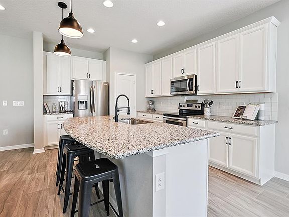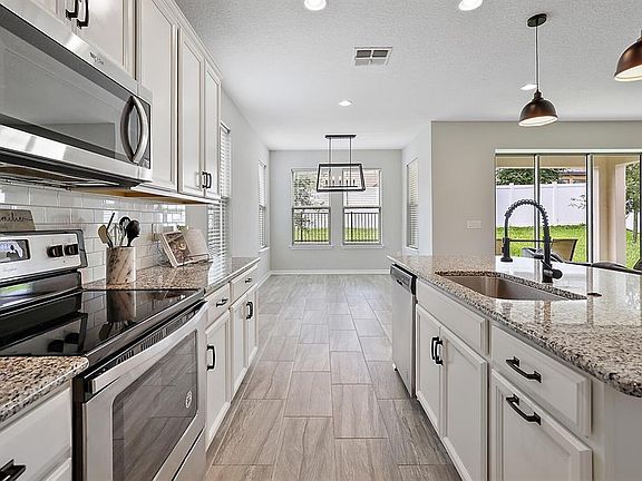 Your home search is over! This Beautiful Hampshire Model, located in the desirable community of the Reserve at Minneola, is practically brand new. Built in 2019 the exterior of the home has great curb appeal and neutral colors that will appeal to any style, along with two car garage. As you enter the home, you are greeted with a large entry way along with two of the bedrooms and extra bathroom. The first two bedrooms have large closet. As you continue through the home, you will come to the custom french door that lead into the den/office, which could also be easily used as a fourth bedroom. The stunning plank tile floors are located throughout the main living space, and high ceilings, making the home feel even more luxurious and spacious. The kitchen features quartz counter-tops, sleek designed back-splash, custom cabinets, all stainless steel appliances and an over-sized pantry. The open floor plan is perfect for entertaining or just having the family all together. The spacious master suite features several large windows for natural light and a beautiful tray-ceiling. The completely upgraded master bathroom features separate his and hers sinks, walk-in shower, and walk-in closet with plenty of space for all the necessities. As you exit, you will see the large sliding doors that allow for the perfect amount of natural light to enter the main living room, a covered lanai is also located on the back of the home, great for grilling during the summer or enjoying some quiet time with a good book on a cool evening. Golf carts are permitted while inside the community, excellent schools, a zero-entry resort-style community pool, and quick access to the new Minneola Turnpike exit. This home is also walking distance to Minneola Athletic Complex complete with baseball, softball, little league, soccer, football, and a playground. Call today to see the gorgeous home before it's gone!