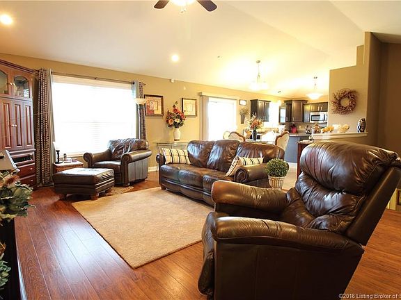 PRIME LOCATION JUST MINUTES TO RIVER RIDGE COMMERCE CENTER AND THE LEWIS AND CLARK BRIDGE! This amazing home is in sought after Whispering Oaks II with Pool and Clubhouse/Rec Center. You will love the spacious feel of this open floor plan with cathedral ceilings that is perfect for entertaining. Beautiful engineered hardwood flooring flows through the living area and down the hall. Kitchen/dining area with a breakfast bar, pantry, sliding doors that lead to an awesome deck to grill and enjoy the outdoors, and all stainless-steel appliances remain! Huge master suite with tray ceiling and double closets. The enormous family room in the basement features daylight windows, tons of recessed lighting and a full bath. There is a vast amount of storage space or additional room to finish. This home is beautifully decorated and meticulously maintained! Buyerâs agent responsible for verifying taxes, exemptions and HOA. All square footage and room sizes are approximate.