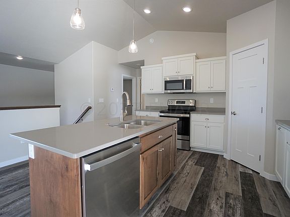 This 'Hobbs' model bi-level home in Horace features quartz countertops, custom countertops, a pantry, a fully finished basement and garage, and an open concept kitchen and living space. There are four bedrooms (2 on each level), and 2 bathrooms. Home receives the new construction tax abatement from the city. Home is ready; book your showing today!