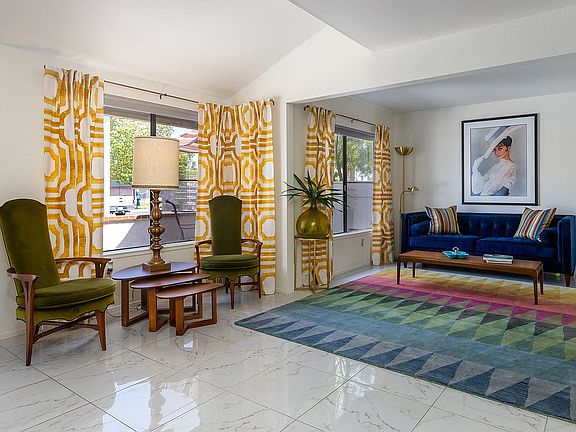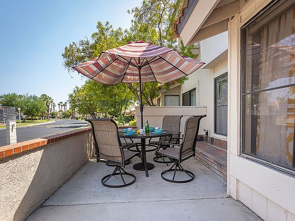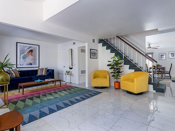 Come see this fantastic town house in Mountain Shadows where YOU OWN THE LAND. The community boasts 6 pools, spa, tennis and pickeball courts. This home has beautiful tiled floors, 3 bedrooms upstairs and a large living room that could also be used as an office. Front and Back patios allow you to enjoy the sun or shade all day. There is one covered parking space with entry right into the back patio. This property is perfect for full time, second home or investment since there are no rental restrictions. Right outside the gates is Tahquitz Creek Golf course and is conveniently located near shopping and restaurants. HOA covers Roof, community landscaping, Trash and Sewers.