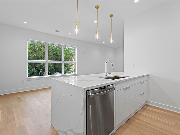 Step into a rare luxury residence along Blvd East offering timeless elegance, modern design, and unbeatable convenience. This stylish studio is thoughtfully crafted with smart layouts and premium finishes, making it the perfect place to settle in and enjoy life. Stay effortlessly organized with plenty of storage a spacious walk-in closet, a linen closet near the bathroom, and a coat closet at the entry. The open kitchen is a showpiece with sleek two-tone cabinetry white lacquer paired with textured grey topped by custom marbled Quartz countertops with a stunning waterfall edge. Complete with GE Profile appliances and a fully vented range hood, it's as functional as it is beautiful. The bathroom delivers spa-inspired comfort with a floating white lacquer vanity, LED-lit floating mirror, and large-format porcelain tile finished with luxe fixtures. For added ease, each unit includes a full-size Whirlpool washer and gas dryer. Residents also have access to a private garage with assigned parking for $175 per month, a gorgeous lobby, a spacious fitness center and a secure package room.
