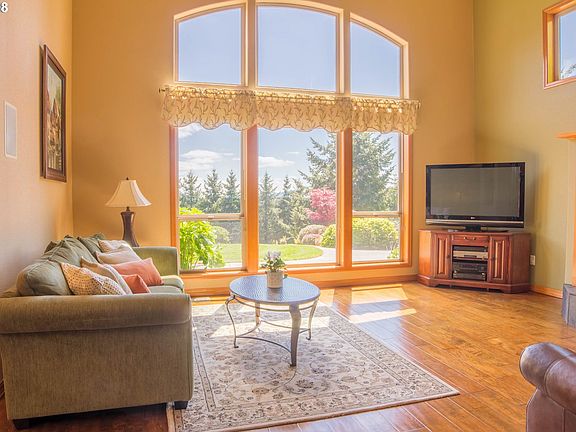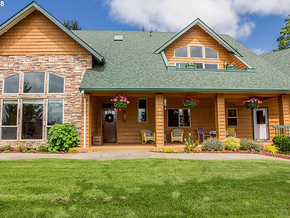 This beautiful custom home allows you to enjoy the Oregon scenery from the massive front porch, the back patio, or the balcony off the mstr suite.The house was built in 2007 by current owner and the cust woodwork and amen astound.The prpty is 4.57AC and incls manicured landscaping,timber, pasture, and a peaceful water feature as you drive up the private dead-end road.The house includes 4 br,2.5 bth to go w/ huge bonus above 3car grg.