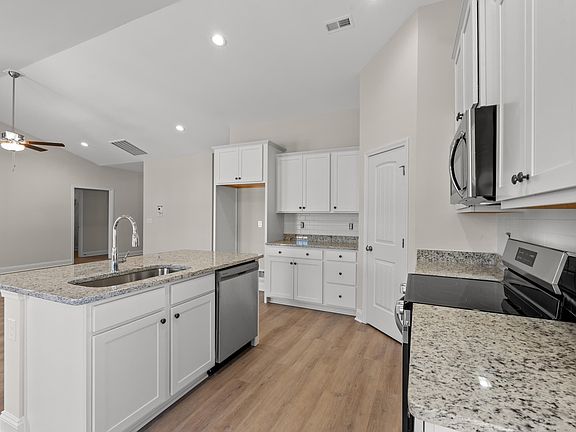 Just completed and No HOA! This is the Beaufort floor plan that is on 1/2 of an acre. Home has a brick accent in front with a nice size rear covered porch. The kitchen comes with 36" and 42" white staggered cabinets with crown molding, granite countertops and stainless steel appliances. The flooring will be waterproof Laminate Wood in Living Room, Kitchen, Hallways, Foyer, Pantry and Dining area, all Bathrooms, Laundry and Carpet in all the bedrooms and closets. The bathrooms have stained cabinets with white cultured marble countertops and double sink in the master bathroom. Master Bedroom has a large walk in closet and a linen in the bathroom. Home has a completely trimmed and painted garage with drop down storage access. Located not far from shopping, medical offices and hospitals, restaurants, schools, and only 40 miles to Myrtle Beach. Building lifestyles for over 40 years, we remain the premier home builder along the Grand Strand. We’re proud to be the 2021, 2022, 2023, and 2024 winners of both WMBF News' and The Sun News Best Home Builder award, 2023 and 2024 winners of the Myrtle Beach Herald's Best Residential Real Estate Developer award, and 2024 winners of The Horry Independent’s Best Residential Real Estate Developer and Best New Home Builder award. Pictures are from another of the same model built elsewhere and may have different features/upgrades. Welcome home to Flossie Meadow!