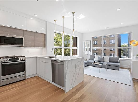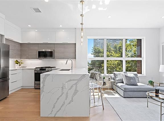 Welcome the new year with your new home at the newest luxury condo residence on Blvd East in 40 years! This 2bed 1 bath is meticulously designed with plenty of closet space. Organize with a large walk-in closet in addition to a linen closet close to the bathroom and a coat closet at the entry. The cabinets in the open kitchen maximize the storage space while incorporating a sleek modern look using two-tone cabinetry. The white lacquer uppers and lowers with textured grey mid cabinets along with the custom marbled Quartz countertops and its striking waterfall edge complements the natural oak hardwood floors. A full suite of GE Profile appliances is perfected with the installation of a fully vented range hood. Elegant cool continues in the bathroom creating a space that is both refined and functional with a floating white lacquer vanity and LED lit floating mirror. Baths are clad in large-format porcelain tile and feature luxe finishes and fixtures. A full-size Whirlpool washer and gas dryer are also in every unit.Amenities for residents: a private garage with assigned parking, a gorgeous lobby, a spacious and inviting exercise room and a comfortable common lounge. Just a key turn away, your future home is ready for move-in! FREE PET, FREE PARKING, NO FEE, NO SECURITY DEPOSIT OPTION.FREE ONE MONTH RENT WITH 13 MONTH LEASE.