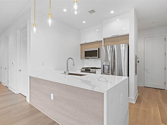Welcome the new year with your new home at the newest luxury condo residence on Blvd East in 40 years! This modern studio is meticulously designed with plenty of closet space. Organize with a large walk-in closet in addition to a linen closet close to the bathroom and a coat closet at the entry. The cabinets in the open kitchen maximize the storage space while incorporating a sleek modern look using two-tone cabinetry. The white lacquer uppers and lowers with textured grey mid cabinets along with the custom marbled Quartz countertops and its striking waterfall edge complements the natural oak hardwood floors. A full suite of GE Profile appliances is perfected with the installation of a fully vented range hood. Elegant cool continues in the bathroom creating a space that is both refined and functional with a floating white lacquer vanity and LED lit floating mirror. Baths are clad in large-format porcelain tile and feature luxe finishes and fixtures. A full-size Whirlpool washer and gas dryer are also in every unit.Amenities for residents: a private garage with assigned parking, a gorgeous lobby, a spacious and inviting exercise room and a comfortable common lounge. Just a key turn away, your future home is ready for move-in! FREE PET, FREE PARKING, NO FEE, NO SECURITY DEPOSIT OPTION.FREE ONE MONTH RENT WITH 13 MONTH LEASE.