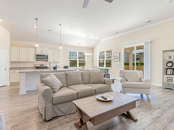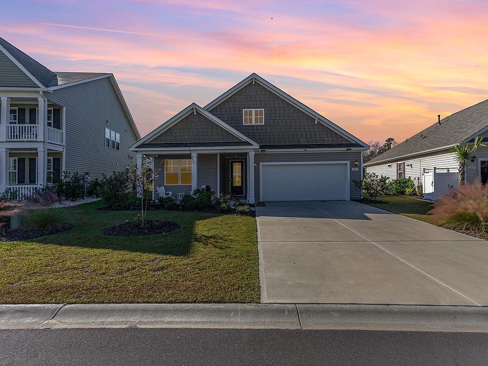 This immaculate, lightly lived-in 4-bedroom/2-bathroom single-level home, recently built in 2021, is located in the esteemed Heather Glen natural gas community of Little River. It has a sweeping view of lush greenery from the extended back patio. The elegant interior boasts 11 ft. ceilings, crown molding, a tray ceiling in the master bedroom, a walk-in shower, stainless steel appliances, a walk-in pantry, granite counter-tops, and beautiful laminate wood flooring throughout the home. The exterior of this home also includes a 220 line for a hot tub and a natural gas line for a grill. This impeccable home would make a unique residence, investment, or vacation spot. Heather Glen is a natural gas community conveniently located off of Highway 17 in Little River. Heather Glen's fantastic amenities include a state-of-the-art swimming pool, a clubhouse, a fitness center, a dog park, a fishing lake and dock, a blueberry garden, and a playground. It is only a short drive away from the Atlantic Ocean, the Intracoastal Waterway, and all of the shopping, dining, golfing, and area attractions of the Grand Strand.