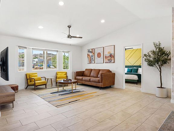 Welcome to your own desert-modern retreat--a turnkey, fully furnished home with unforgettable indoor-outdoor living. This home is an active short term rental with successful history, a dream investment home! Set against expansive mountain views with no houses behind you, this property offers complete privacy and a backyard oasis perfect for relaxing or entertaining. Go outside to a covered concrete patio with a full pergola, ideal for lounging in the shade while enjoying the hot tub, cowboy pool, sauna, and firepit. Whether you're soaking under the stars or gathering with friends, this backyard has everything you need for the ultimate desert lifestyle. Inside, you'll find a bright, modern aesthetic with thoughtful desert-inspired design throughout. Each bedroom features its own unique accent wall, and the open-concept living spaces are sleek and stylish. The kitchen boasts quartz countertops, a waterfall island, stainless steel appliances, and a statement backsplash, blending beauty and function. Additional upgrades include ceiling fans, Nest thermostat, and clean finishes throughout. The two-car garage doubles as a bonus space with windows, a door, washer/dryer, and even an air hockey table. Perfectly located just minutes from downtown Joshua Tree, the farmers market, Joshua Tree National Park, Joshua Tree Saloon, Yucca Valley, and only a short drive to Palm Springs, this home offers both convenience and escape. Whether you're seeking a primary residence, vacation home, or short-term rental investment, this desert-modern sanctuary checks every box.