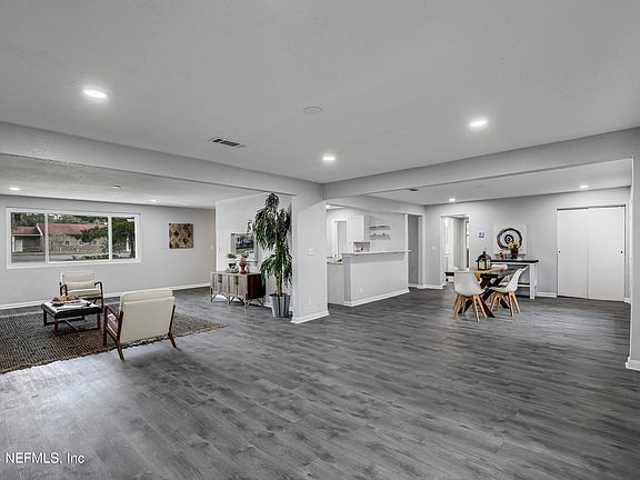 This fully renovated 3 bed/2 bath gem boasts luxury updates throughout. The stylish gray walls and wood-like laminate flooring create a modern and inviting atmosphere. Tons of windows flood the home with natural light, highlighting the open floor plan and huge main living spaces. The top-of-the-line kitchen appliances make cooking a breeze. Enjoy the outdoors on the huge, private patio surrounded by a massive backyard with gorgeous trees. With tons of closets and storage, you'll have plenty of space for all your belongings. This home is perfectly situated across the street from a school and close to shopping, dining, and major highways (295 and I-95). Downtown Jacksonville and its vibrant culture are just a 12-minute drive away. Don't miss this amazing opportunity!! Schedule your showing today!