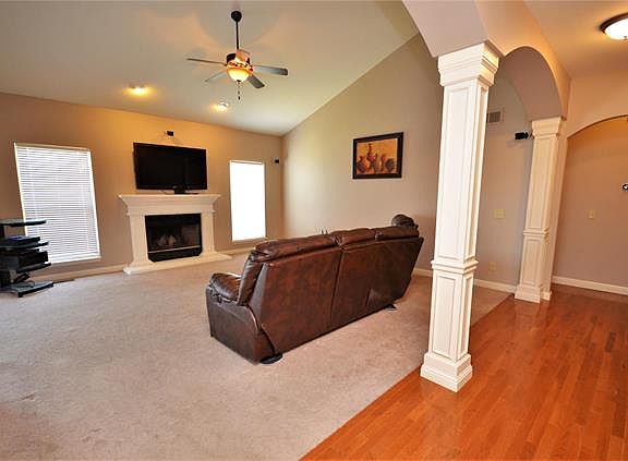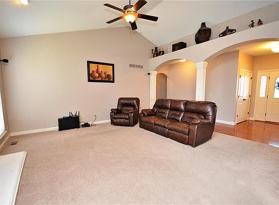 Stunning ranch home with lots of upgrades. Walk into a nice open floor plan with 9ft ceilings, hardwood foyer, beautiful columns adjoin to great room. Tasteful arched entry ways along with vaulted ceiling & cozy fireplace. Beautiful french glass doors open to separate dinning room or office. Big open kitchen w/ custom 42" Maple cabinets , breakfast bar, upgraded appliances and pantry. Large master bedroom suit includes coffered ceiling, walk in closet and bay window. Luxury bath W/ his & hers vanities separate jet tub & shower. Fabulous walk out finished LL with big built in bar with granite counter tops & media room with projector. Extra sleeping area & bath. Home includes large deck that leads down to Patio, sprinkler system and over sized garage. Subdivision includes club house/swimming pool and walking trails. Don't miss out on this home.