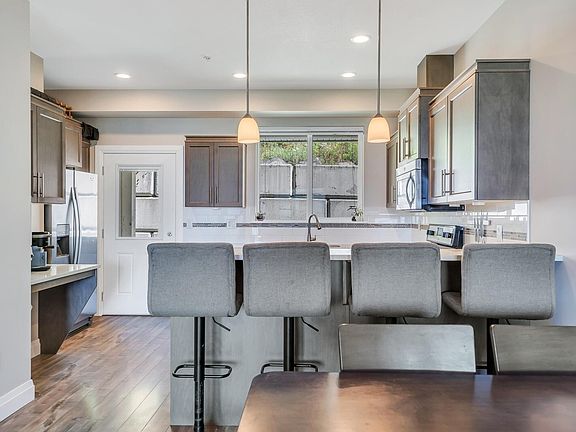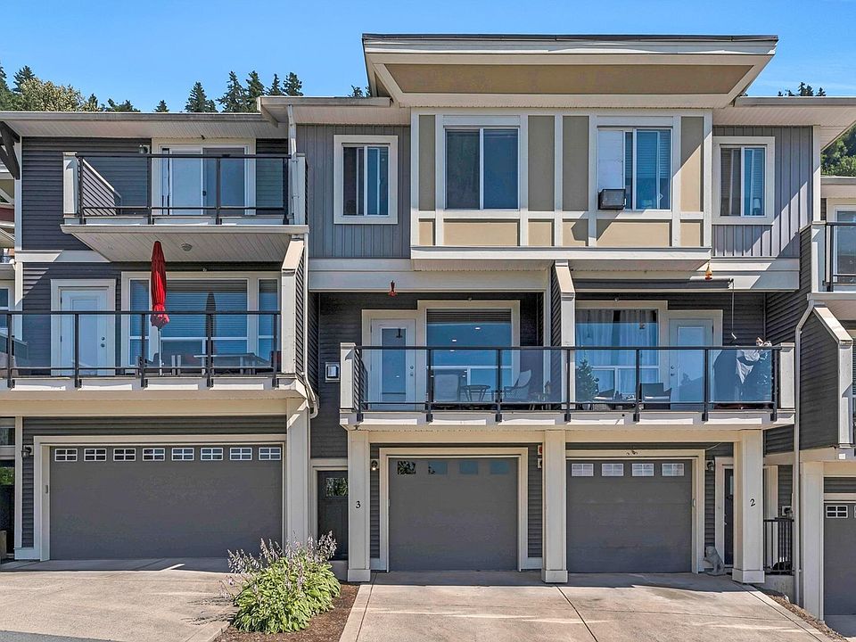 Beautiful townhome in Hillcrest Lane with unobstructed, sweeping valley and mountain views. This beautifully maintained home features fresh paint and brand new carpets throughout. The main floor offers a spacious kitchen with quartz countertops, stainless steel appliances, and a breakfast bar, opening into a bright living area with 9-foot ceilings and a cozy corner fireplace. Upstairs, you'll find 3 bedrooms, including a primary suite with a charming window seat, walk-in closet, and an ensuite with dual sinks. The laundry area is also conveniently located upstairs. Enjoy a fully fenced backyard and an extra-long garage with room for storage. Ideally situated close to parks, schools, shopping, and hiking trails”plus just minutes from the Vedder River and Cultus Lake. (id:41440)