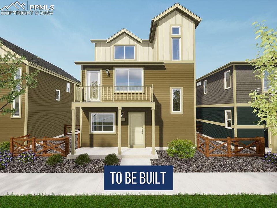 This 3-story home offers a practical and spacious layout. The ground floor includes a versatile flex room, perfect for an office or guest space, along with a 2-car garage for secure parking. The second-floor features two bedrooms, a shared bathroom, a modern kitchen, and a balcony for outdoor enjoyment. The top level is dedicated to the primary bedroom, which includes an ensuite bathroom with walk-in closet for ample storage, and a rooftop deck for entertaining. This home design provides comfort and flexibility across three levels.