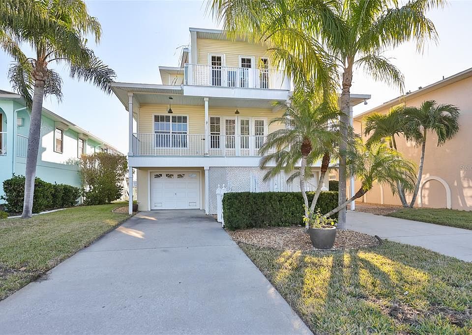 Discover waterfront living at its best in this spacious 3-bedroom, 2-bathroom home spanning three well-designed levels, perfectly situated on a serene canal and complemented by a large yard with endless outdoor potential. The ground floor offers a three-car garage with ample room for vehicles, storage, and water toys, along with a welcoming covered front porch—perfect for relaxing or greeting guests. The second floor is the heart of the home, featuring a bright kitchen with breakfast nook, formal dining room, and inviting living room, all ideal for everyday living and entertaining. This level also includes two bathrooms, a separate laundry room, and a large balcony where you can unwind and enjoy tranquil canal views. The upper floor serves as a private retreat, showcasing a spacious primary bedroom with a walk-in closet, en-suite bathroom, and versatile loft space—ideal for a home office, reading nook, or lounge. A private balcony completes this level, offering peaceful waterfront scenery. Step outside to enjoy direct canal frontage with a wooden dock equipped with electricity. Boaters will love the impressive setup, including a large boat lift, smaller lift, and manual kayak lift. The smaller lift and kayak lift are constructed of aluminum, while the main lift features wood poles, aluminum beams, and durable Trex-style decking boards, designed for strength and longevity. With generous indoor space, exceptional boating amenities, a large yard, and a three-car garage, this property offers the perfect blend of comfort, functionality, and waterfront lifestyle.