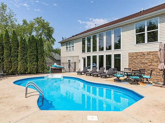 First time on the market! This atrium ranch is loaded with upgrades. Featuring a salt water in ground pool. Beaming hardwood flooring throughout the main living areas. Separate dining room. Great room hosts vaulted ceiling ,wall of windows and open staircase leading to the spacious family room & full bath. Plenty of unfinished areas with unlimited possibilities. Gourmet kitchen with raised panel cabinets, pull out shelves, planning desk, pantry, granite countertops, center island, under lighting lighting & high end appliances. Adjoining breakfast room that leads to composite covered deck. Right off the main floor laundry is a workshop with additional access also from the 3 car garage. Luxury master suite with coffered ceiling, walk in closet and luxury bath hosting double bowl vanity & recently added walk in shower. Lush landscaping with irrigation system. Top rated school district. Excellent location. conveniently near schools shopping & highway.