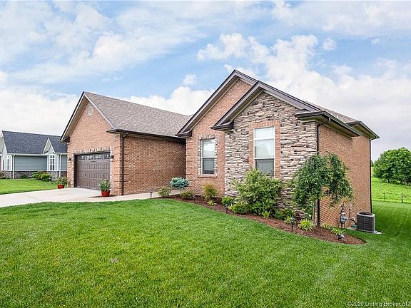 Welcome to your own little slice of heaven! Enjoy your favorite beverage on your covered deck! Lot 210 The KELLY FLOOR PLAN by LandMill Developers with a FINISHED WALKOUT BASEMENT and COVERED DECK. Home features; split floor plan with approx 1000 sq ft finished basement, stone on front, upgraded white cabinets, stainless steel appliances, trim galore, custom window coverings, well appointed laundry/utility room, water softener, Vivent security system (service not included), crown molding in living room, recently professionally landscaped, ten ft ceilings in living room & kitchen, granite counter tops in kitchen & bathrooms, tile back splash in kitchen, tile Shower in master bath, bull nose corners and smooth ceilings. Whispering Oaks II Subdivision is 1.6 miles from River Ridge Commerce Center & close to the East End Bridge. 21 minutes to downtown Jeffersonville and 21 minutes to shopping/dining in Louisville via East end bridge!