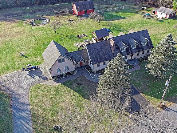 Country living at its finest. Five beautiful acres featuring fruit/berry bushes, heated barn, fencing and an additional detached 2 car garage/ tractor shed. The 2500+ square foot home completely wrapped in vinyl shake siding is meticulously maintained and features a pellet stove in the dining room with custom mantle. Living room features high ceilings with wood fireplace. Original Hardwoods throughout. Home office or potential 4th bedroom in finished area above the garage. Massive easily finishable attic space available for extra living space as well. Enjoy the views and your morning coffee on the large deck out back which also features a firepit for relaxing at night.